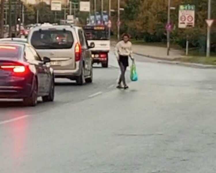 Olay, dün akşam saatlerinde 50. Yıl Mahallesi Eski Edirne Asfaltı Caddesi’nde yaşandı. Trafiğin hızla aktığı esnada bir kadın, henüz bilinmeyen nedenle yola atladı. Araç sürücüleri kadına çarpmamak için manevra yaparak olası kazanın önüne geçerken, kadın yolda beklemeye başladı. Bir süre sonra yere oturan kadın, durakta bekleyenler tarafından kaldırarak kaldırıma götürüldü. O anlar ise cep telefonu kamerasına yansıdı.