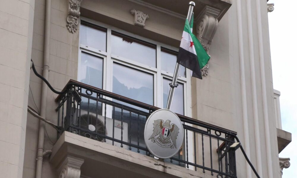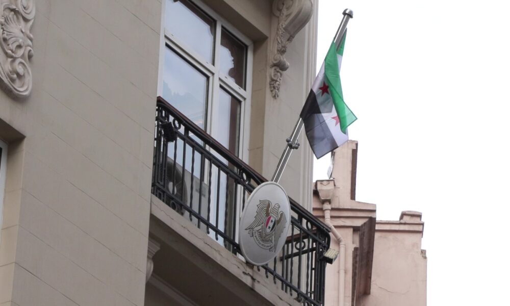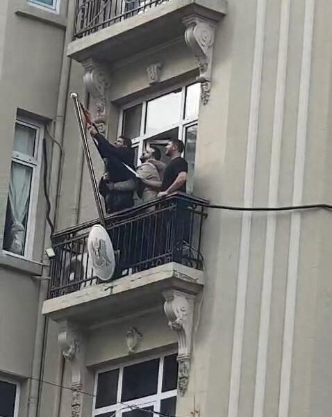 ŞİŞLİ'deki Suriye Başkonsolosluğu'nda asılı olan rejim bayrağı indirildiği sırada konsolosluk binasında olan Suriye uyruklu gazeteci ve yapımcı Mary Melhem, yaşananları DHA'ya anlattı. (FOTOĞRAF: GÜLSEREN KARAPINAR / İSTANBUL DHA)