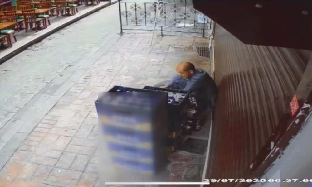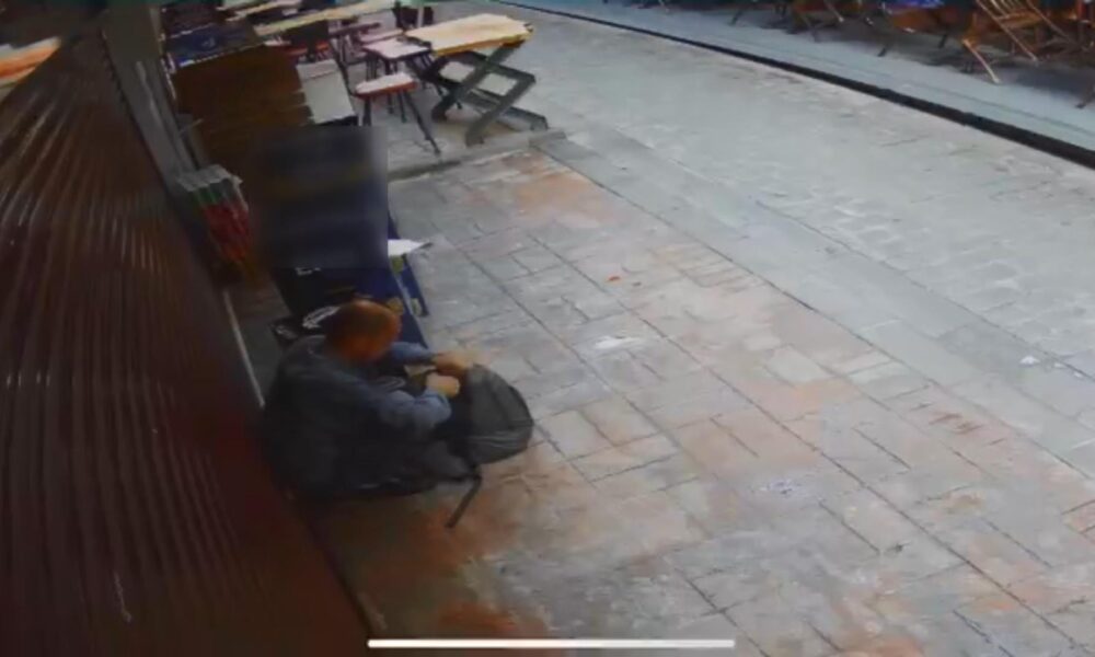 Olay, dün saat 06.30 sıralarında Beyoğlu Hüseyinağa Mahallesi’nde meydana geldi. Edinilen bilgiye göre sabah saatlerinde çantasıyla sokakta bulunan bir restoranın önüne gelen kişi önce etrafı inceledi. Ardından da restoranın önünde bulunan kaldırımda bir süre vakit geçirdi. Yanındaki suyla yüzünü ve başını yıkayan kişi daha sonra restoranın önünden uzaklaştı. Dakikalar sonra restoranın önüne geri gelen kişi bu kez, iş yeri önünde bulunan içki kasalarının yanına oturdu.