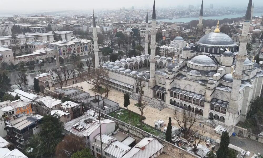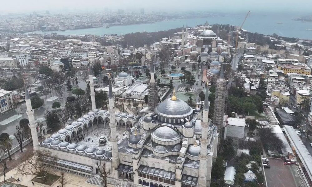 İstanbul-Tarihi yarımada beyaza büründü, seyirlik manzara havadan görüntülendi