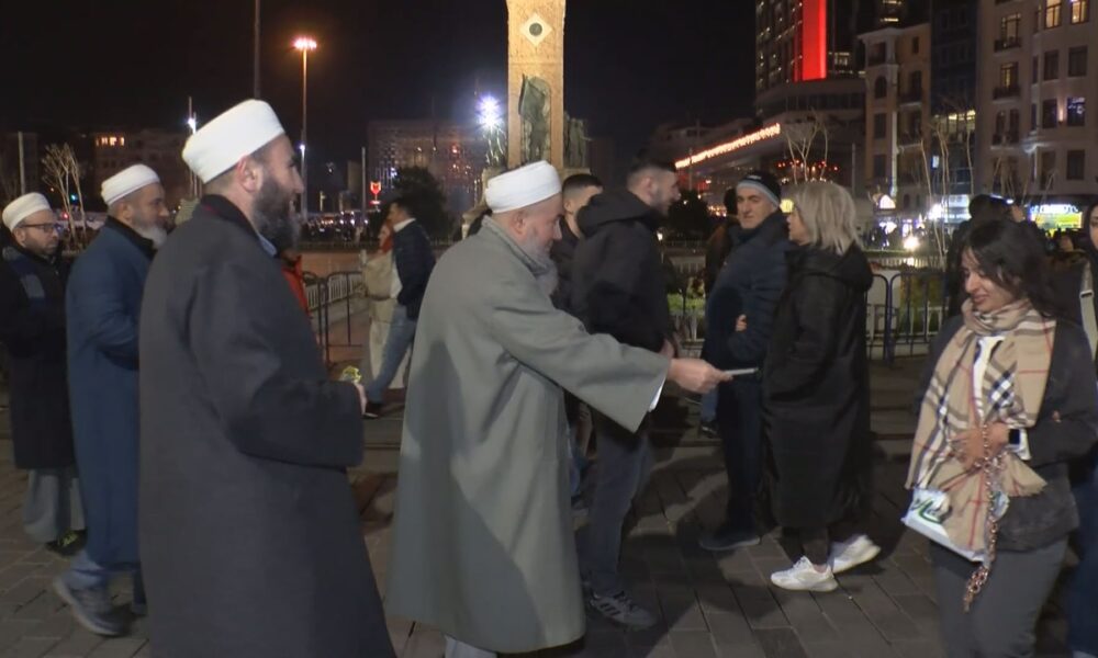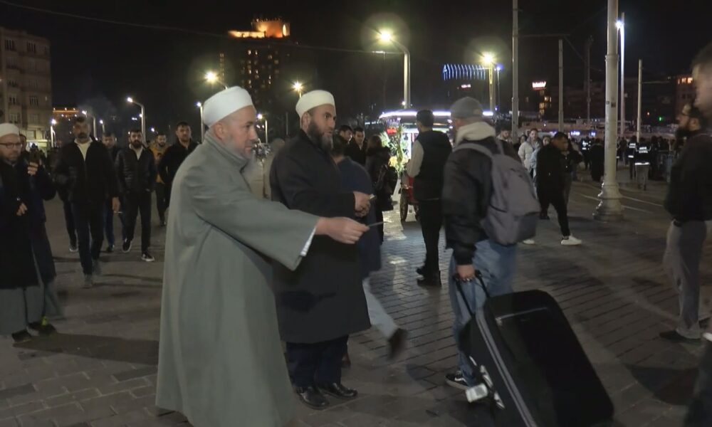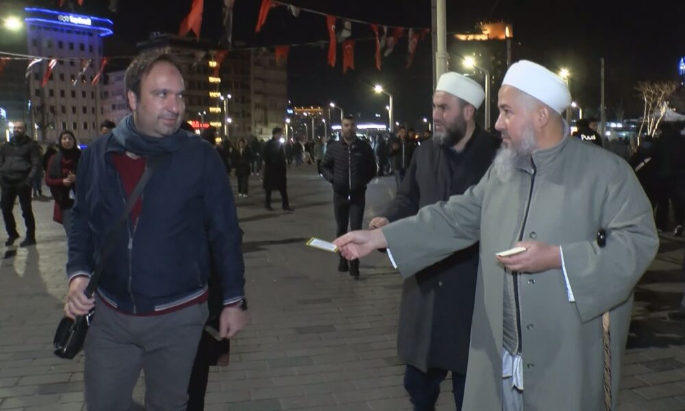 İstanbul – Tebliğciler, yılbaşı gecesi Taksim Meydanı’nda bildiri dağıttı