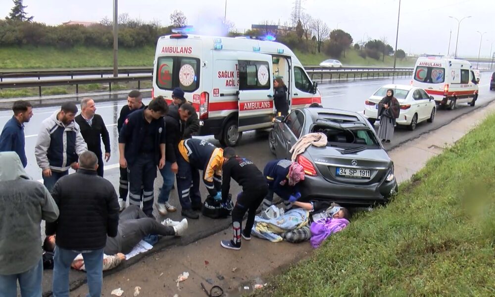 İstanbul- Tuzla TEM Otoyolu’nda kaza yapan otomobile başka araç çarptı; 2 si çocuk 7 yaralı