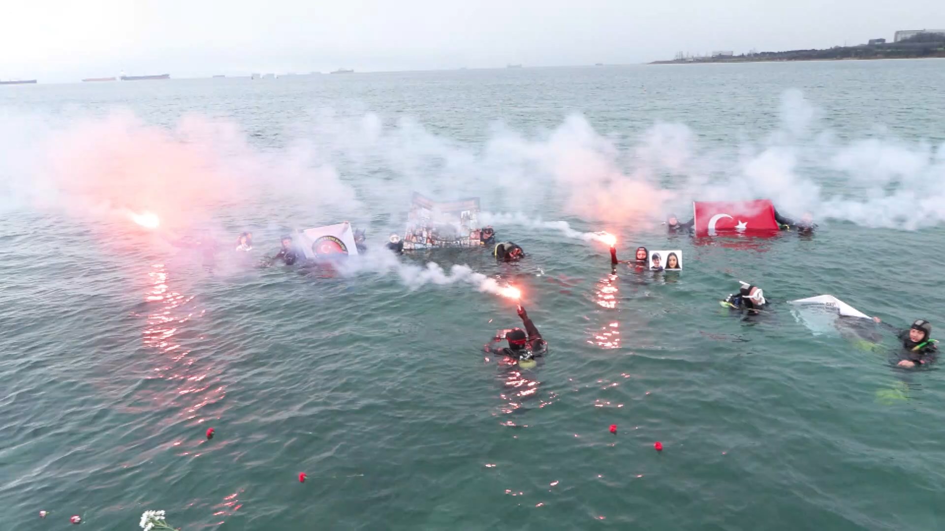 Derinlere Dalış Saygı Topluluğu Başkan Yardımcısı ve gazeteci Gökhan Karakaş, “Derinlere Saygı Dalış Topluluğu olarak Kartalkaya’da yitirdiğimiz 78 canı hiç unutmayacağız. Hiçbir suyun, hiçbir söndürücünün bu yangını söndüremeyeceğini de biliyoruz. Bugün bir ateş başındayız ama onların içindeki ateşin hiç sönmeyeceğini biliyoruz. Anladığımız dilden, denizin diliyle, su altının diliyle kamuoyuna sesimizi duyurmaya çalıştık. Onların yanındayız, hiç yalnız bırakmayacağız. Bu canların yitip gitmesine, adaletin yerini bulması için çabalayacağımıza da söz veriyoruz” şeklinde konuştu.Dalış gerçekleştiren dalgıç Sinem Balaç ise, “Su oldukça soğuktu ama bu kadar insanın karşısında biz üşüdük demeye utanıyoruz. Umarız adalet yerini bulur. Gökhan abinin dediği gibi bu ateş hiç sönmeyecek. Biz de elimizden geldiğince her zaman onları anmaya, değerlerini yaşatmak için elimizden gelen herşeyi yapmaya devam edeceğiz” dedi.