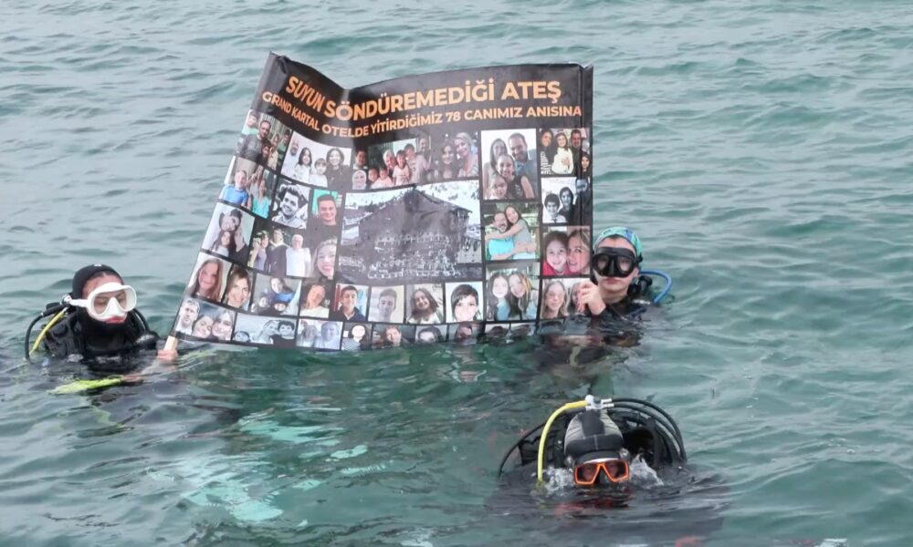• Bolu-Kartalkaya’daki Grand Kartal Oteli yangın faciasında ölen 78 kişi içi saygı dalışı gerçekleştirildi. Fotoğraf: Canan İlarslan / İstanbul DHA