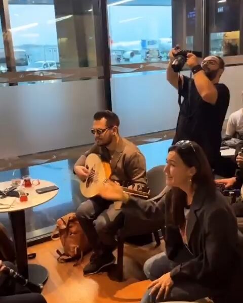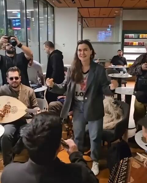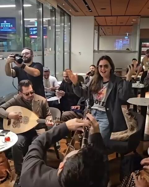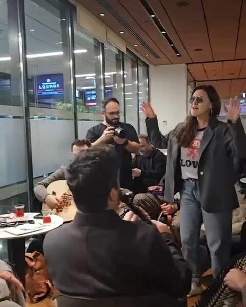 Uçağı rötar yapan Şevval Sam’dan havalimanında mini konser