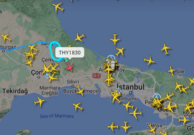 Meteorolojinin uyarılarının ardından İstanbul’un kuzeyinde etkili olan şiddetli yağış hava trafiğini olumsuz etkiliyor. İstanbul’da etkili olan şiddetli yağmur ve elektrik yüklü CB bulutları nedeniyle İstanbul ve Sabiha Gökçen Havalimanı’na iniş için alçalan uçaklar havada tur atmak zorunda kaldı. Pilotlar, hava trafiğini düzenleyen kontrolörlere gördükleri olumsuz hava koşullarının olduğu koordinatlar konusunda bilgi veriyor.