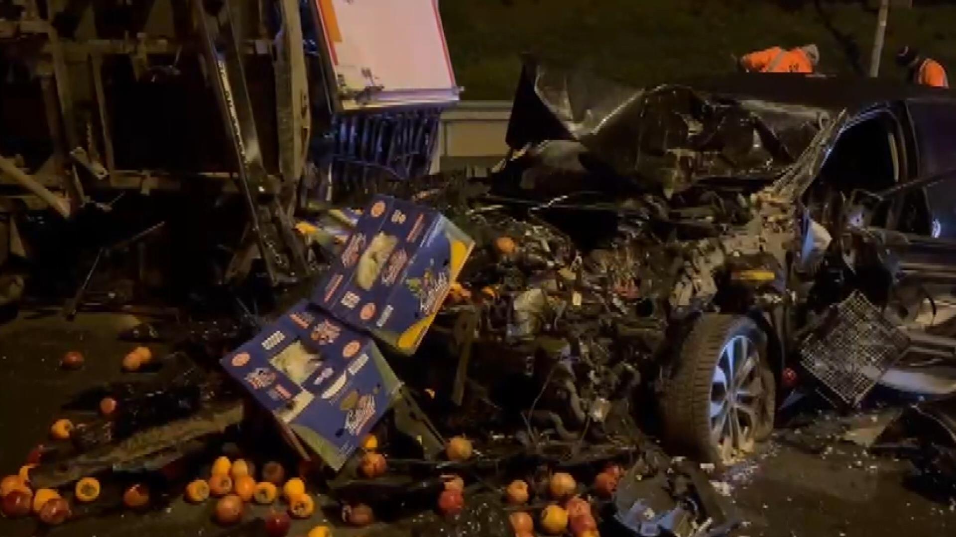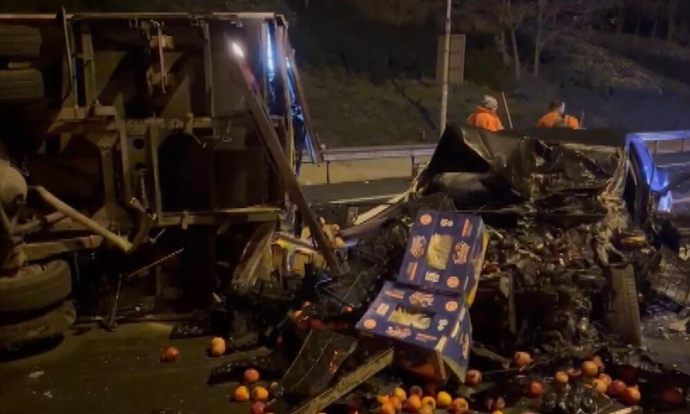 İstanbul – Ümraniye TEM Otoyolu’nda otomobil meyve yüklü kamyonetle çarpıştı: 2 yaralı