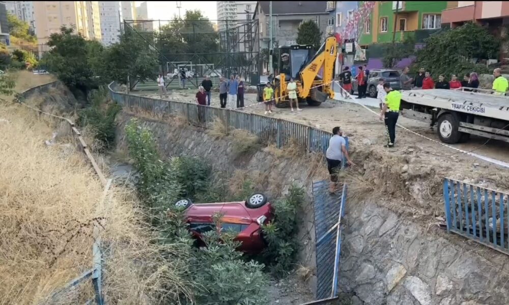 İstanbul – Ümraniye’de kaza yapan araç dere yatağına düştü