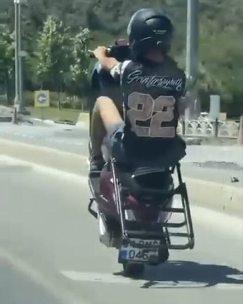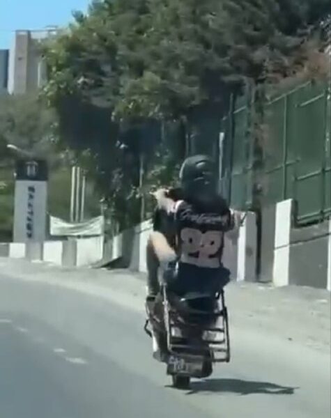 Olay, dün öğle saatlerinde Şile Yolu Ümraniye yönünde yaşandı. Akan trafikte seyir halindeki motosiklet sürücüsü, uzun süre tek teker üzerinde ilerledi. Tehlikeli yolculuğu gören diğer sürücüler motosiklet sürücüsüne tepki gösterdi. O anlar seyir halindeki bir araç içerisinden cep telefonu kamerasıyla kaydedildi. Görüntülerde motosikletlinin trafikte tek teker üzerinde ilerlediği anlar yer aldı.
