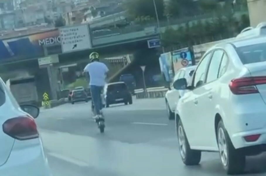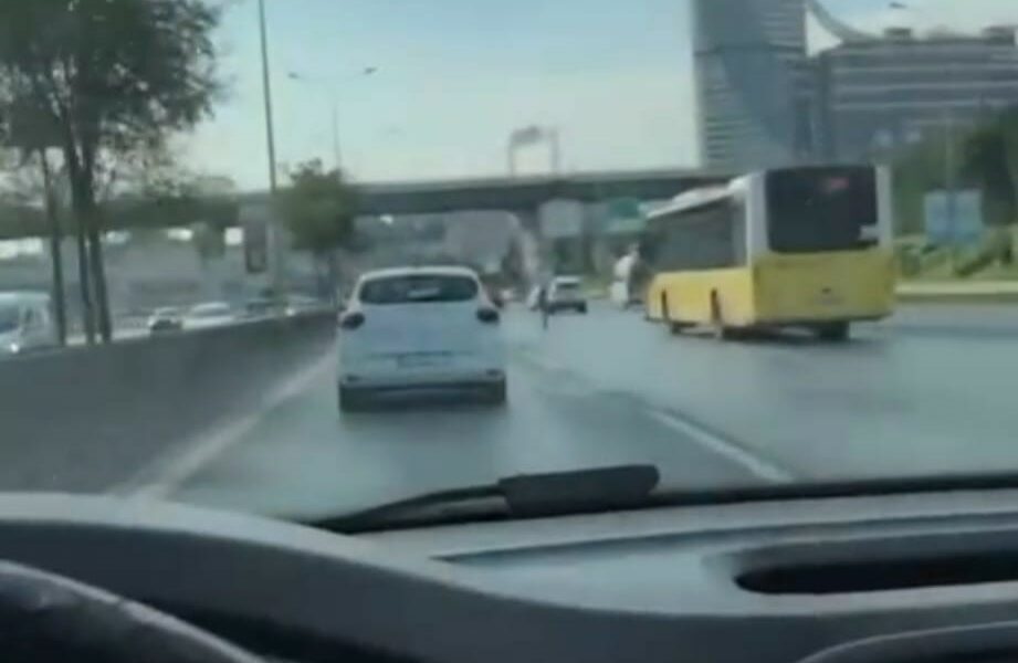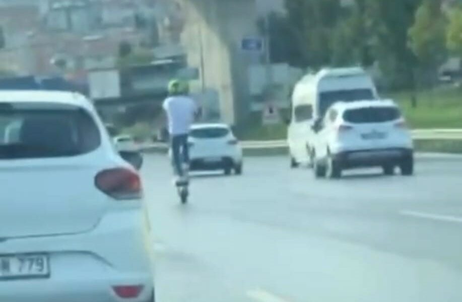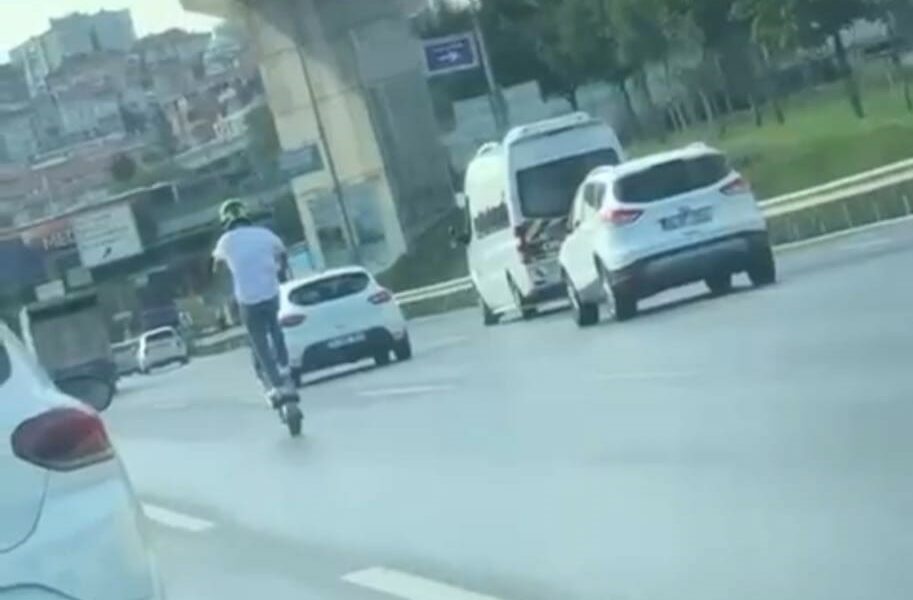 Üsküdar D-100’de tek teker giden Scooter sürücüsü kamerada