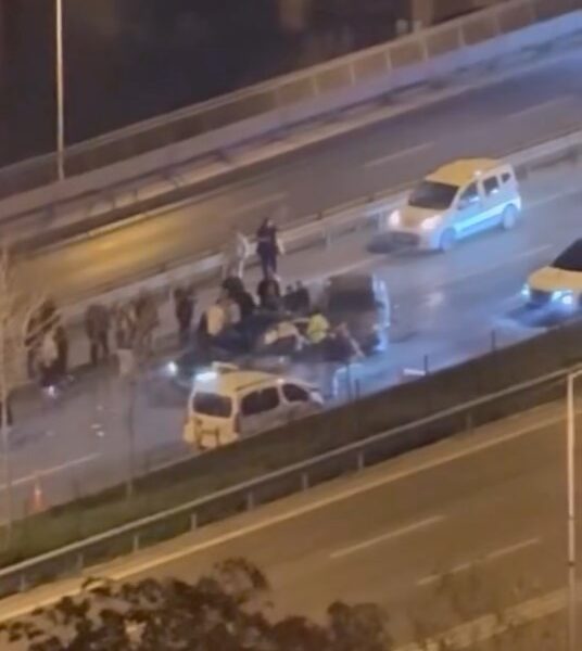 Kaza anı yolda seyreden başka bir sürücünün araç kamerasıyla kaydedildi. Görüntülerde, kavşaktan dönüş yapmak isteyen otomobile arkadan gelen araçların çarptığı anlar yer aldı.