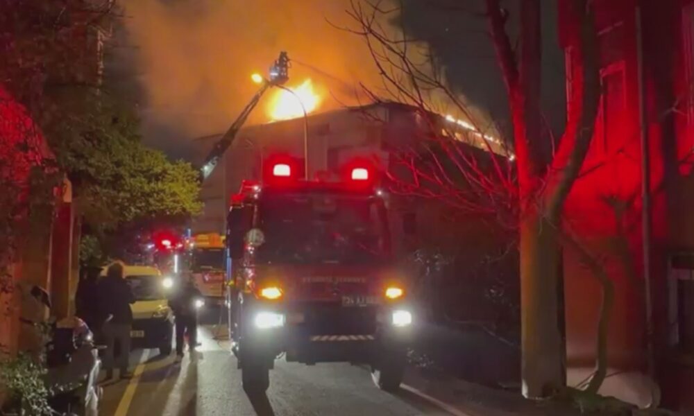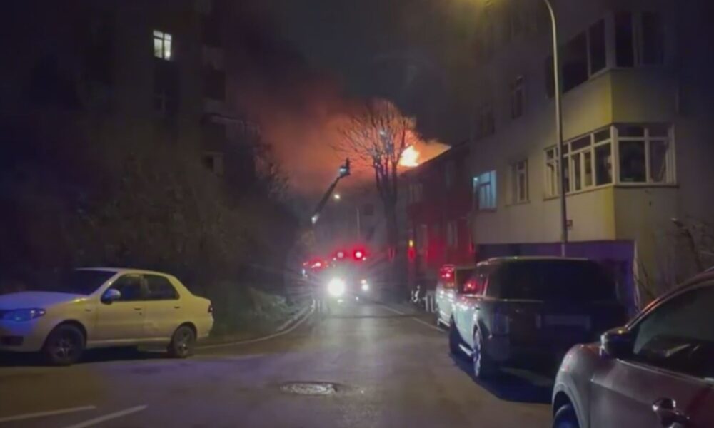 İstanbul – Üsküdar’da 7 katlı metruk binanın çatısı alev alev yandı