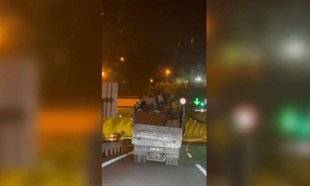 Olay, saat 23.00 sıralarında Şile Otoyolunda yaşandı. Seyir halindeki kamyonette taşınan eşyaların üzerinde 5 kişi yolculuk yaptı. Trafikteki tehlikeli yolculuk cep telefonu kamerasıyla kaydedildi. Görüntülerde eşyaların üzerinde oturan iki çocuk ve diğerlerinin hiçbir güvenlik önlemi olmadan yolculuk yaptığı anlar yer alıyor.