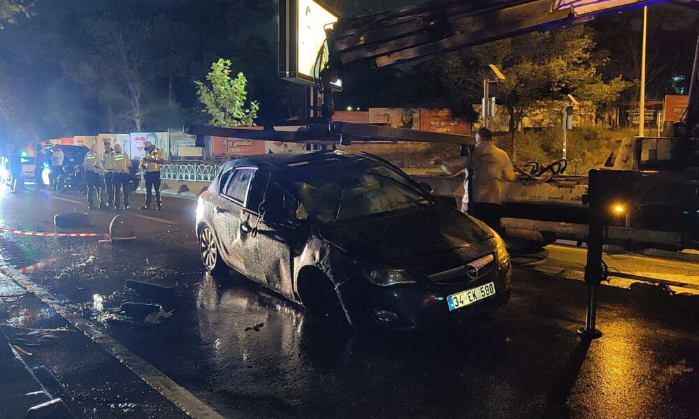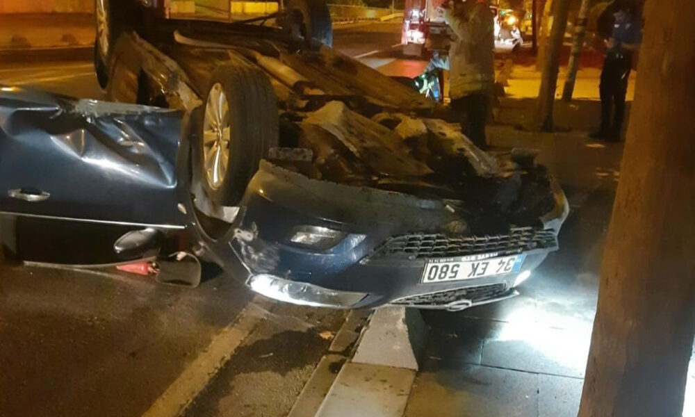 Üsküdar’da otomobil kaldırıma çıkarak devrildi: 1 yaralı
