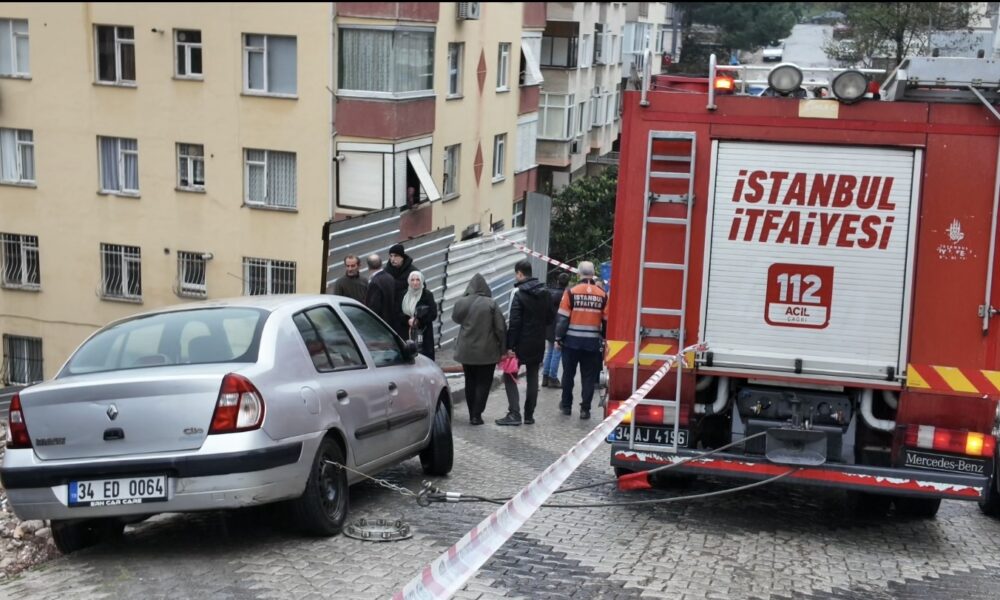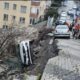 İstanbul – Üsküdar’da yağışın ardından yol çöktü; park halindeki otomobil çukura düştü