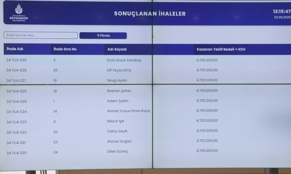 Muhammen ve satış bedelleriyle ilgili de bilgiler veren Demir, “Birinci ihalede 4 milyon 250 bin artı KDV bir muhammen bedelimiz vardı. Bu ihalede muhammen bedelimiz 4 milyon 500 bin artı KDV. En düşük taksi plakası satışımız 4 milyon 700 bin artı KDV olarak gerçekleşti, en yüksek ise 5 milyon 60 bin + KDV olarak gerçekleşti. İhaleye katılanlarla sohbet ettiğimizde, ilk ihalede bu plakaları alanların çok memnuniyet duyduğunu, işlerinin gayet iyi olduğunu ve uygulama tabanlı taksiden dolayı da bunu önerdiklerini gördük. Biz de mutlu olduk. Dolayısıyla bu ihaleleri yaptıkça daha sık yapacağız, belki başka değişik yöntemlerle yapacağız ama İstanbul Büyükşehir Belediyesi olarak ihaleleri yaptıkça taksici esnafının, şoför esnafının da ihalelere ilgisi artıyor. Biz de bundan çok mutluyuz” ifadelerini kullandı.