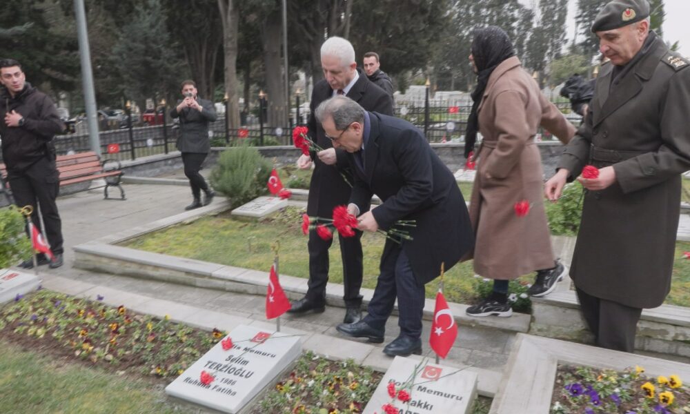 Konuşmasının ardından şehitlik defterini yazıp imzalayan Davut Gül, beraberindeki heyetle şehit mezarlarına tek tek karanfil bıraktı.
