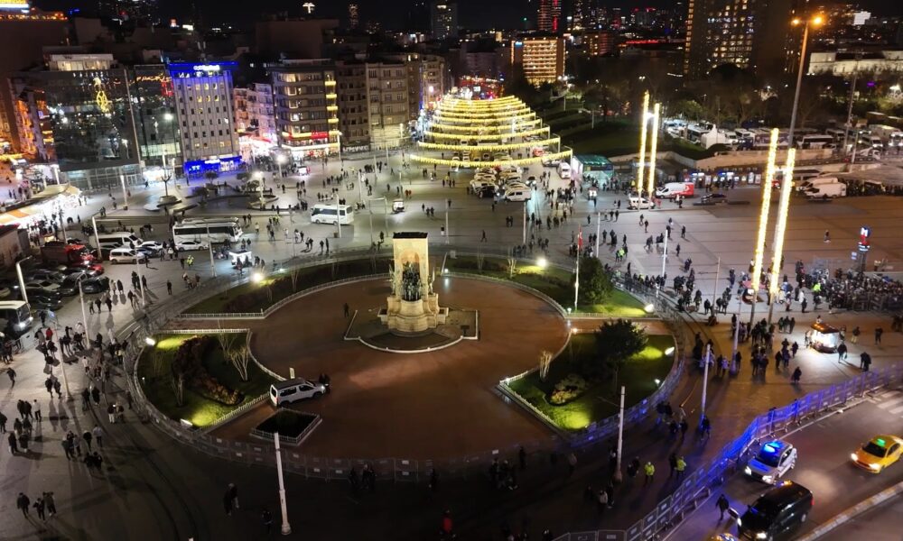 İstanbul- Yeni yıla saatler kala Taksim Meydanı havadan görüntülendi