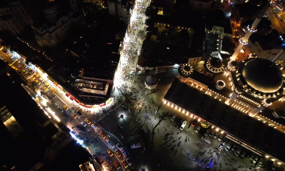 Yeni yıla saatler kala Taksim Meydanı havadan görüntülendi