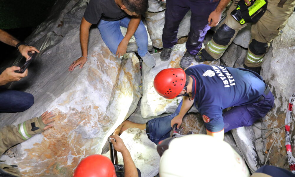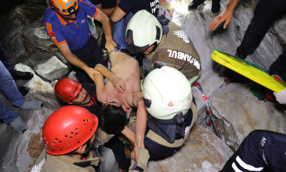 FATİH Yenikapı sahilinde yürüdüğü sırada bir kişi elindeki telefonunu kayalıkların arasına düşürdü. Yabancı uyruklu kişi telefonun almak isterken kayalıkların arasına sıkıştı.İtfaiyenin 2.5 saatlik çalışması sonucu kurtarılan genç sağlık ekiplerine teslim