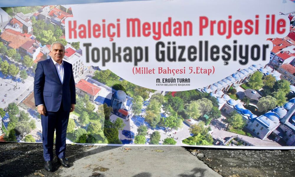 Topkapı Kaleiçi Meydanı’nda konuşma gerçekleştiren Fatih Belediye Başkanı Mehmet Ergün Turan, “Fatihimizin en müstesna alanlarından bir tanesi olan Tarihi Topkapı Meydanındayız. Bulunduğumuz alan yaklaşık olarak 1995 yılından itibaren otopark olarak kullanılıyordu. Otobüslerin park alanıydı. Dolayısıyla bu tarihi kent merkezinde bir karmaşıklık hali söz konusuydu. Şimdi yaptığımız proje yarışması neticesinde, bu proje yarışmayı kazandı ve bu projenin uygulamasını şu anda yapıyoruz. Çevre Şehircilik Bakanlığımız ve Toplu Konut İdaremizle beraber ihaleyi yaptırdık. Bunu gerçekten bir müjde olarak veriyorum. Bittiğinde de İstanbullular, Fatihliler inşallah çok kısa zaman sonra görecekler. İstanbul yıllardır kent hafızasında olmayan tarihi bir kent meydanına kavuşuyor. Sadece bu bulunduğumuz alan içerisinde yirmi bin metrekarelik bir kent meydanı oluşmuş olacak. Bu alanın yirmi metrekarelik kısmı tamamen trafiğe kapalı alan olacak. Trafik etrafından dönmüş olacak ve civarındaki bütün binalar bir kentsel tasarım projesiyle beraber kent meydanı ile bütünleştirilecek. Yıllardır önü kapalı olan Topkapıdaki sur duvarının da önündeki engelleri kaldırmış olacağız. Böylece sur duvarı da meydana çıkmış olacak. Buradaki otobüsleri, İstanbul Büyükşehir Belediyesi İETT İşletme Müdürlüğü ile birlikte sur dışına aldık. Buradan onlara da teşekkür ediyorum” ifadelerini kullandı.
