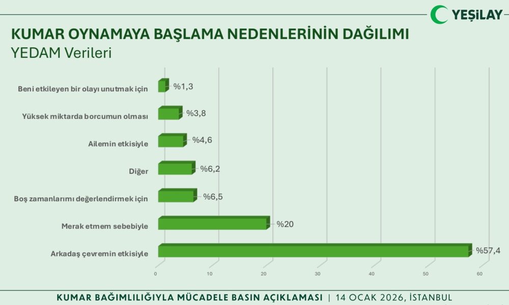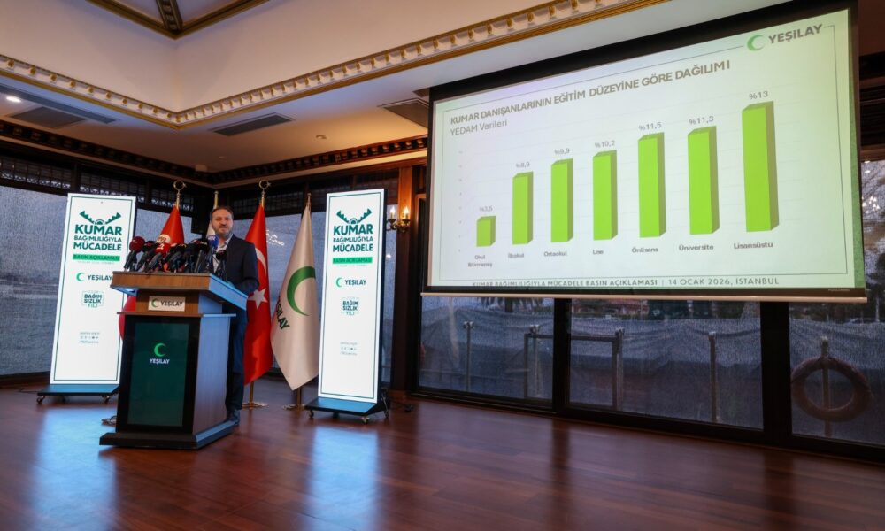 Türkiye Yeşilay Cemiyeti, sanal kumarın yaygınlaşmasına dikkat çekmek ve kumar bağımlılığına ilişkin 2025 yılı verileri ile çözüm önerilerini kamuoyuyla paylaşmak amacıyla bir basın toplantısı düzenledi. Türkiye Yeşilay Cemiyeti Genel Merkezinde düzenlenen toplantıda Yeşilay Genel Başkanı Doç. Dr. Mehmet Dinç konuştu.