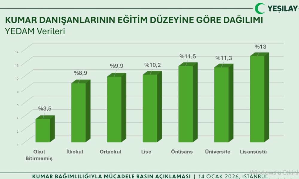 Doç. Dr. Dinç, “Yüzde 13’ü lisansüstü bize gelen danışanların. Yüzde 11’i üniversite mezunu, lisans mezunu. Yüzde 11’i ön lisans mezunu. Yüzde 10’u lise mezunu, yüzde 9’u ortaokul mezunu, yüzde 8’i ilkokul mezunu, yüzde 3’ü okul bitirmemiş durumda. Normalde eğitimle beraber bağımlılığın azalmasını bekleriz ama burada tam tersi bir çerçeve söz konusu. En yüksek rakam lisansüstü, üniversitenin üzerine yüksek lisans yapmış, doktora yapmış insanımızda olduğunu görüyoruz” dedi.