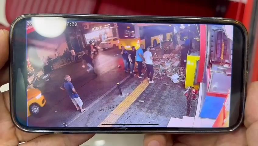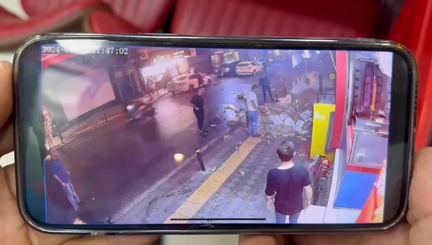 Zeytinburnu’nda iş yerinin asma tavanının çöktüğü anlar kamerada-1