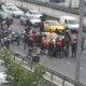 D-100 Karayolu Zeytinburnu mevkiinde seyir halindeki yunus motosikleti, önünde seyreden taksiye çarptı. Kazada yaralanan 2 yunus polisi ambulansla hastaneye sevk edilirken durumlarının iyi olduğu öğrenildi. - Fotoğraf: İstanbul DHA