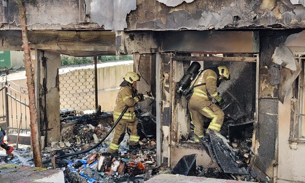 • Mahalle sakinlerinin patlamalar nedeniyle kısa süreli panik yaşadığı yangın, itfaiye ekiplerinin müdahalesiyle söndürüldü. Fotoğraf: Emre KURT / İstanbul DHA