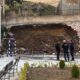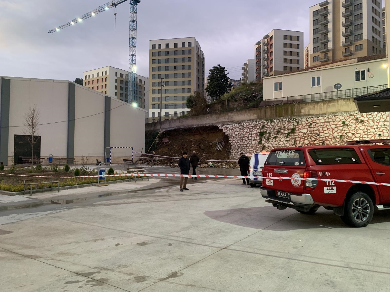 Kocaeli'nin İzmit ilçesinde inşaat alanı ile lise arasındaki yaklaşık 10 metre yüksekliğindeki istinat duvarı okulun bahçesine çöktü. Fotoğraf: Nazım Özgün Erbulan/İzmit(Kocaeli),(DHA)