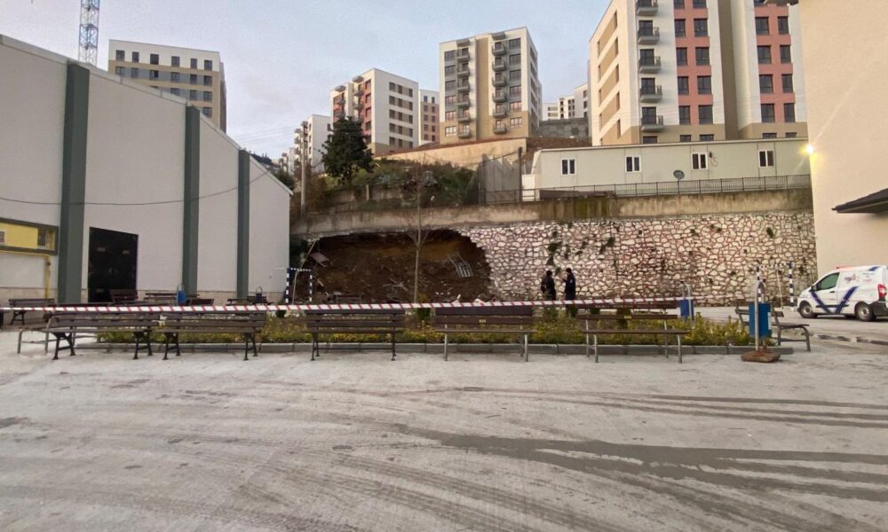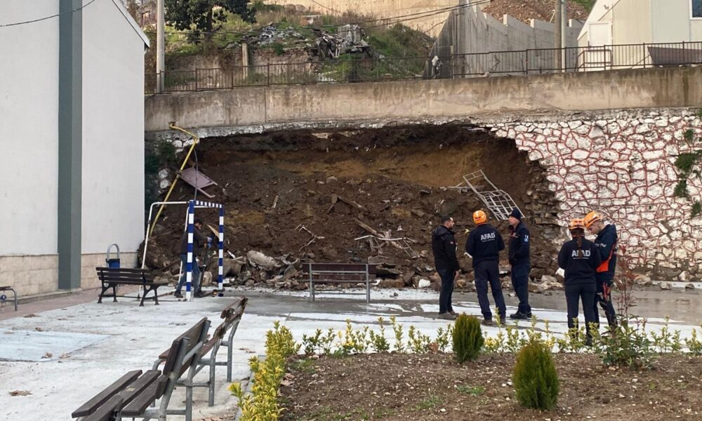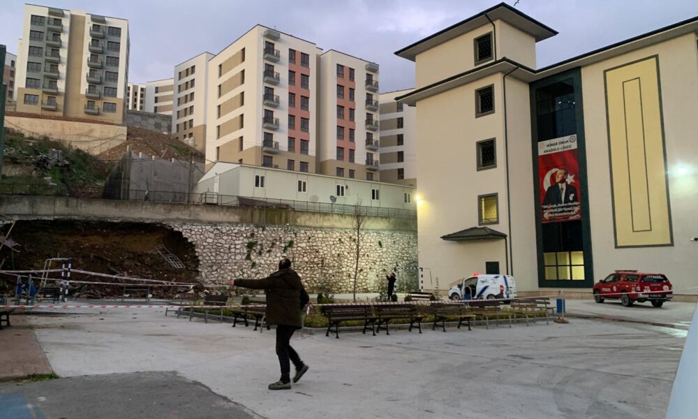 İstinat duvarının lise bahçesine çöktüğü anlar kamerada / Ek fotoğraf