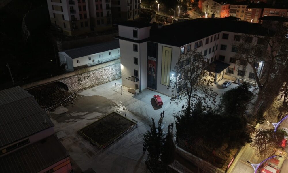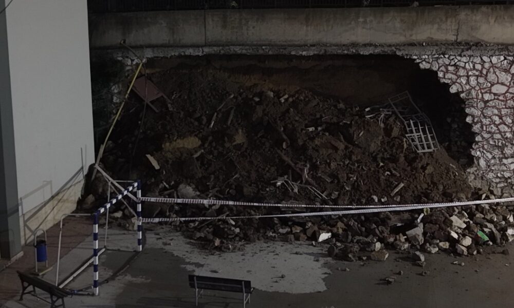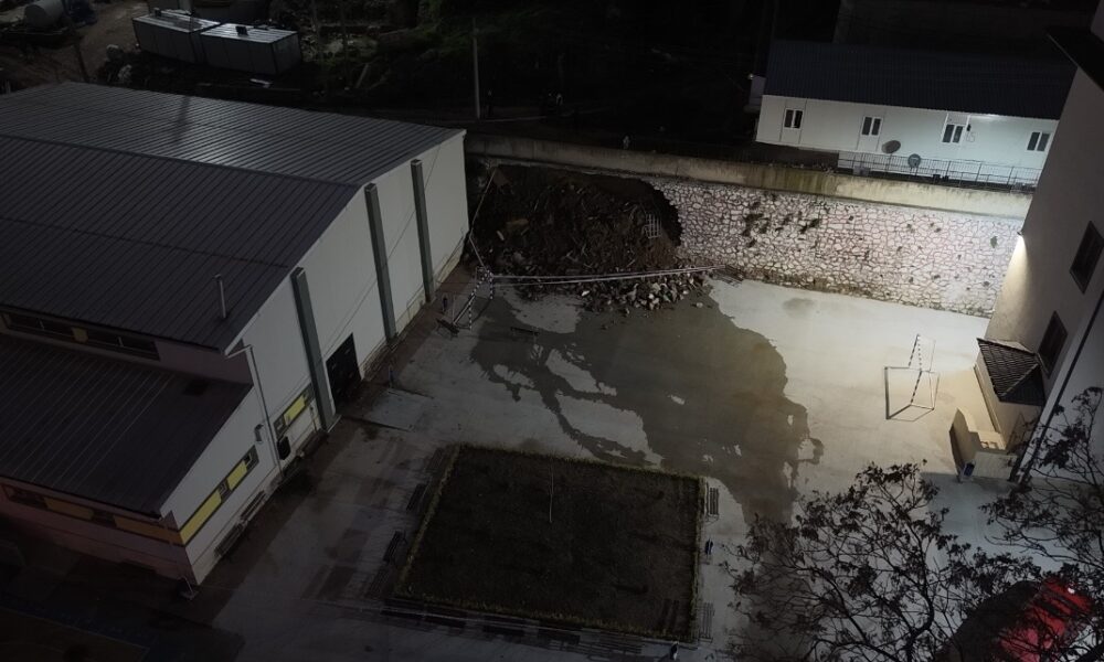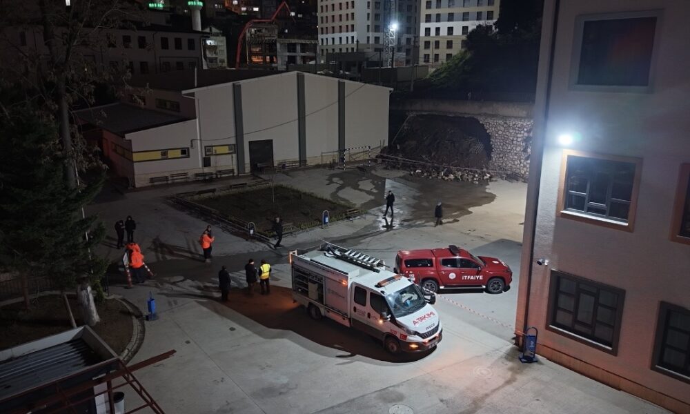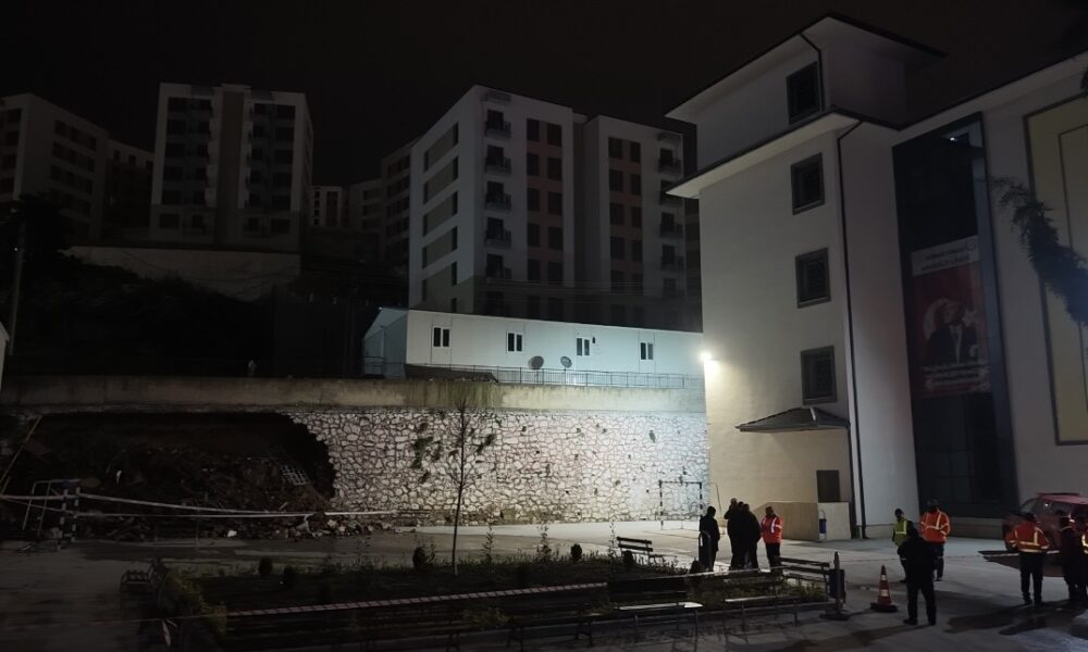 İstinat duvarının lise bahçesine çöktüğü anlar kamerada