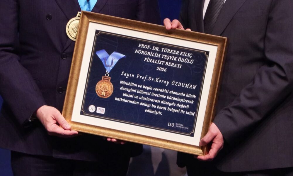 Türk Nöroşirürji Akademisi ve Türkiye Beyin Vakfı tarafından organize edilen ‘Prof. Dr. Türker Kılıç Nörobilim Teşvik Ödülü’ töreni, İstinye Üniversitesi Vadi Ana Kampüs Kongre Merkezi’nde düzenlendi. Törende, Dünya Sanat ve Bilim Akademisi Başkanı Prof. Dr. Garry Jacobs, Avrupa Bilim ve Sanat Akademisi Senatörü Prof. Dr. Stefan Brunnhuber ile alanında uzman hekimler, akademisyenler ve öğrenciler yer aldı. Altı finalist arasından birinciliğe, Tıp Fakültesi Nöroşirürji Anabilim Dalı öğretim üyesi Prof. Dr. Koray Özduman layık görülürken, ödülü Prof. Dr. Türker Kılıç takdim etti.