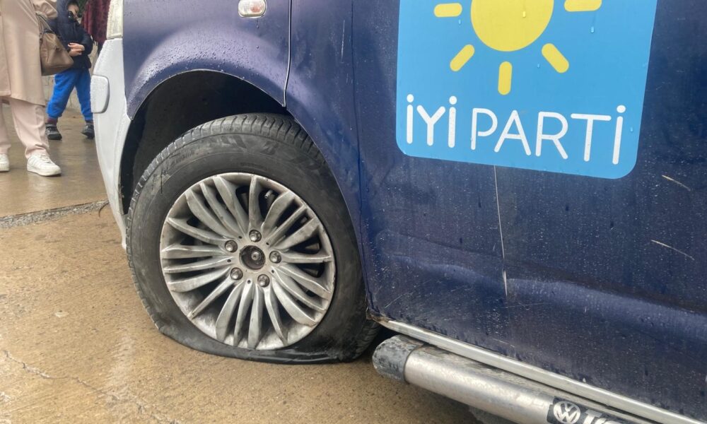 İYİ Parti adayının seçim minibüsünün lastiklerini kesen 2 şüpheli yakalandı