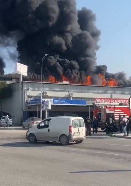 Evka-3 Mahallesinde 4. Sanayi Sitesinde bulunan 129/9 Sokaktaki bir iş yerinde, saat 10.30 sıralarında yangın çıktı. Alevleri fark edenler, durumu itfaiye ekiplerine bildirdi. Büyüyen alevler, yakındaki başka işyerlerine de sıçradı. Olay yerine çok sayıda itfaiye ekibi sevk edildi. Gökyüzüne yükselen simsiyah duman ilçenin pek çok noktasından görülürken, polis ekipleri çevre güvenliğini sağlamak için önlem aldı. İtfaiye ekiplerinin alevlere müdahalesi sürüyor.