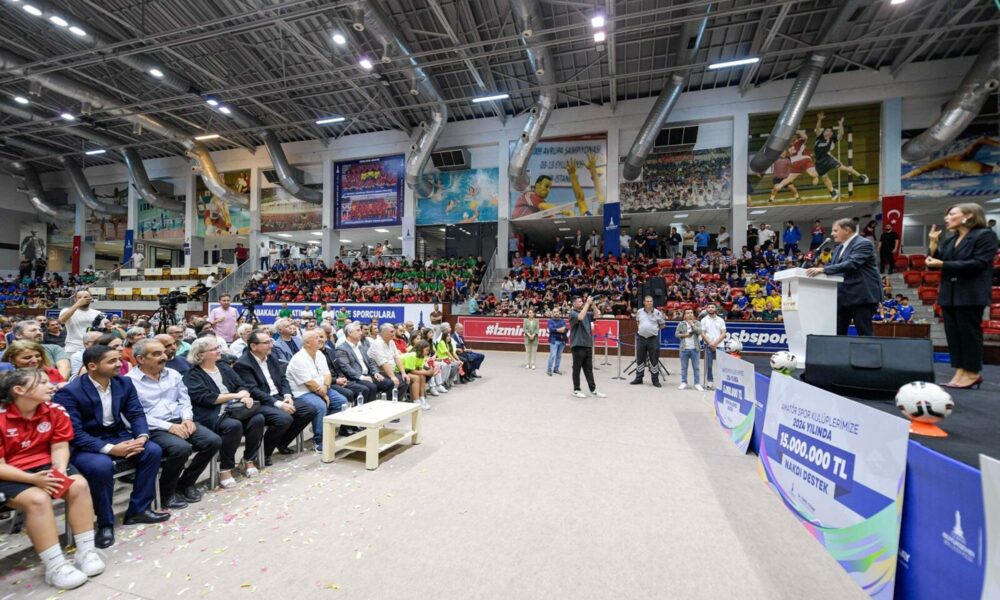 Büyükşehir Belediye Başkanı Cemil Tugay, “Burada oluşturduğunuz muhteşem tabloya tanıklık etmek benim için büyük bir onur. Bu güzel ortamın sihrini, hepinizin yüreğinde, aklında taşımasını istiyorum. 2025in sonunda İzmirde sporu hep birlikte büyütmenin keyfini yaşayalım. Bu güzel çocuklarla, bu güzel gençlerle, kulüplerimizle İzmiri sporun şehri yapalım. Aramızda şampiyon kardeşlerimiz var. Nice şampiyonları hep birlikte yetiştirelim. İzmire yakışan budur. İzmire yakışan Türkiye şampiyonları, Avrupa şampiyonları, dünya şampiyonları ve olimpiyat şampiyonları yetiştirmektir. Gerçekten sporcuya duyduğumuz sevgi çok farklı. Spor yapmak isteyen gençlerimize duyduğumuz sevgi çok samimi, çok içten. Bunun gereğini yerine getireceğiz. Bu sene yaptığımız yardım geçen yılın iki buçuk katı. Önümüzdeki yıl inşallah bu senekinin iki katı, üç katı olacak” diye konuştu.