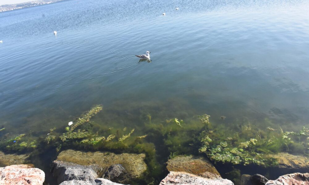 İzmir Körfezi kıyısı, deniz yosunlarıyla yeşile büründü