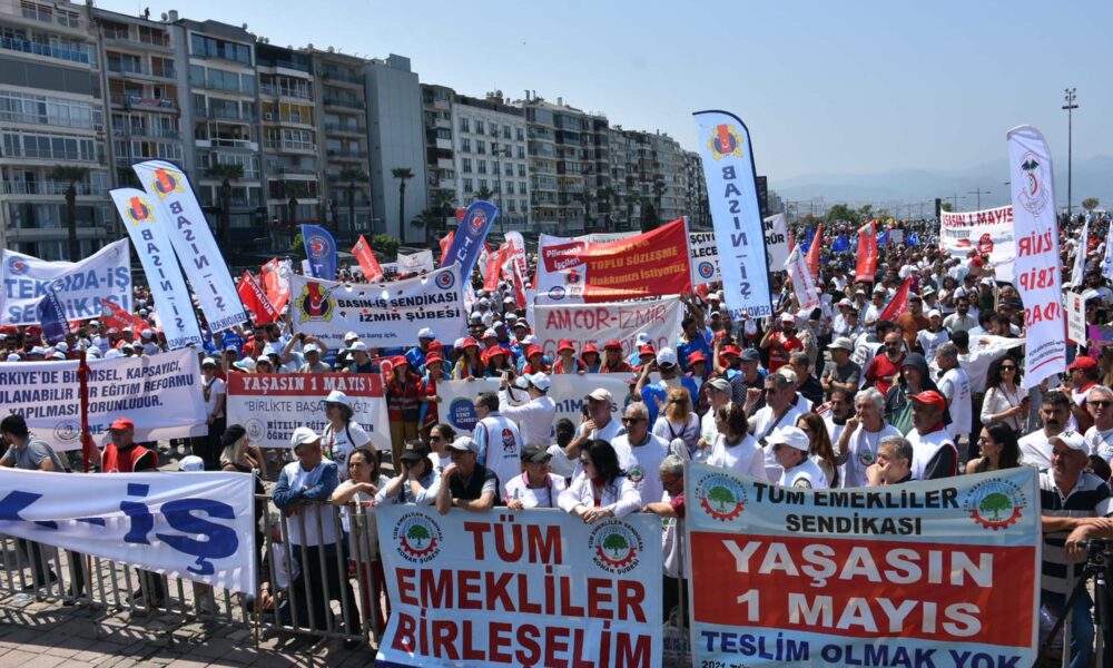 Türk-İş Ege Bölge Temsilcisi Hayrettin Çakmak ise Anayasada tanımlanan demokratik, laik ve sosyal hukuk devletinin işler hale gelmesi için mücadele edeceklerini belirterek, “Gelecek, işçi sınıfının ve tüm emekçilerin ellerinde yükselecektir. Bizler sadece işçilerin değil, tüm emekçilerin, kadınların, çocukların ve ötekileştirilen tüm kesimlerin, doğanın ve tüm canlıların haklarını sonuna kadar savunacağız. İnsan onuruna yaraşır koşullarda yaşayabilmek için azim ve kararlılıkla kavgamızı sürdüreceğiz” dedi.