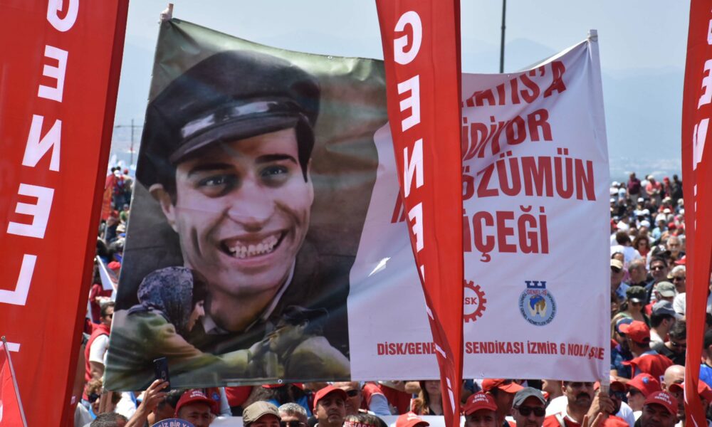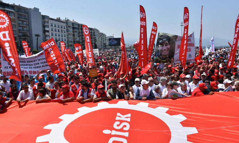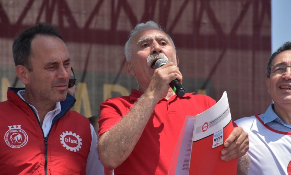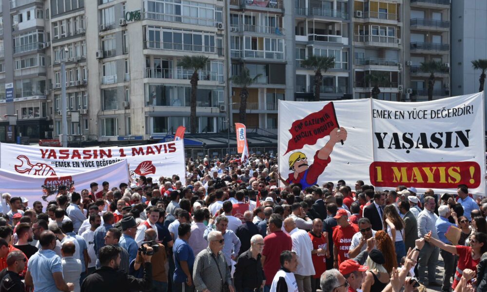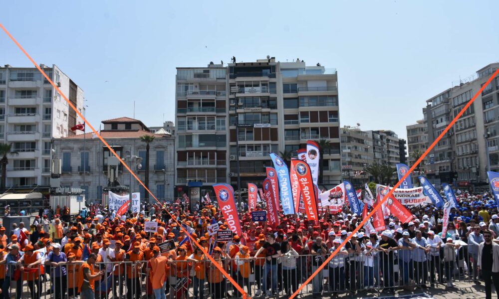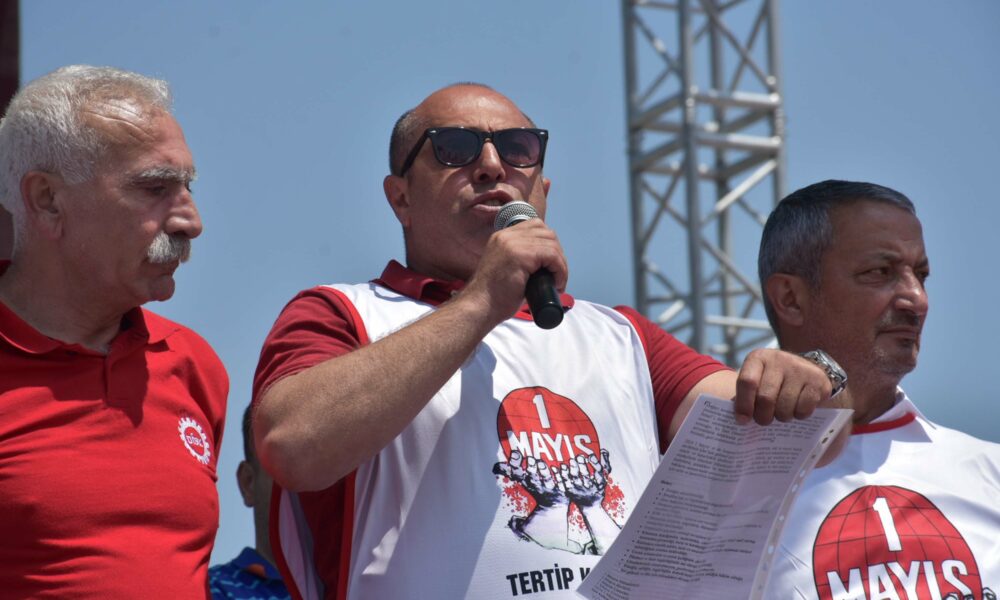 Gündoğdu Meydanı’nda konuşan Türkiye Devrimci İşçi Sendikaları Konfederasyonu (DİSK) Ege Bölge Temsilcisi Memiş Sarı, haksızlığa karşı itirazları Cumhuriyetin ikinci yüzyılında 1 Mayıs meydanlarından başlatacaklarını söyledi.