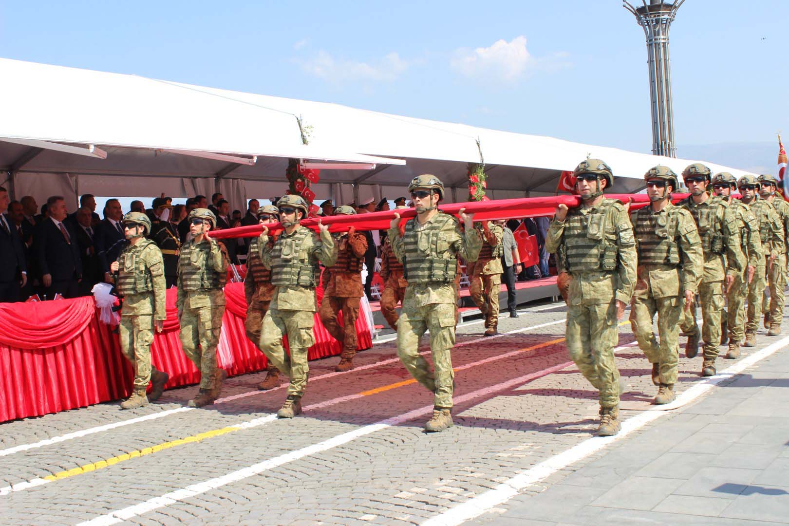 Programın devamında kürsüde bir konuşma yapan Maliye Yüzbaşı Yusuf Eldemir, Türk ordusunun 102 yıl önce kazandığı zaferinin önemine dikkati çekerek, “1900lü yılların başlarında meydana gelen büyük devletler arasındaki çıkar çatışmaları, dünyada gelişen fikir akımları, sanayileşme gibi gelişmeler sonucunda Birinci Dünya Savaşı çıkmış, Mondros Mütarekesi imzalanarak kan dökerek yurt edindiğimiz Anadolu toprakları, o dönemin büyük devletleri tarafından işgal edilmiş ayrıca tarihimizde kara bir leke olarak geçen Sevr Anlaşması da ulusumuza dayatılmıştır. İşgal güçleri birlikleri her yerde kadınımıza, yaşlımıza ve çocuklarımıza dünyada eşine az rastlanır zulüm ve hakaretlerde bulunmuşlardır. İşte böylesine umutsuz görünen ve üzerimizde kara bulutların dolaştığı bir ortamda, Mustafa Kemal Atatürk ve silah arkadaşları bağımsızlık meşalesini yakarak ya istiklal ya ölüm parolasıyla aydınlığa giden yolu aralamışlardır. Bu bağımsızlık, bir aydınlık mücadelesinin ilk hedefi olmuştur” diye konuştu.