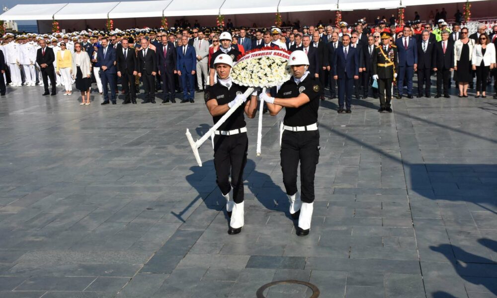 İzmirde 30 Ağustos Zafer Bayramı kutlamaları kapsamında Cumhuriyet Meydanında düzenlenen tören, Atatürk Anıtına çelenk konulması ile başladı. Kutlamalara katılanlar, ellerindeki Türk bayrakları ile yıl dönümü coşkusuna ortak oldu. Törene Sanayi ve Teknoloji Bakanı Mehmet Fatih Kacır, İzmir Valisi Süleyman Elban, İzmir Büyükşehir Belediye Başkanı Cemil Tugay, Ege Ordusu ve Garnizon Komutanı Korgeneral İrfan Özsert, milletvekilleri, siyasi parti başkanları, üniversite rektörleri, idari ve askeri erkan ile vatandaşlar katıldı. Anıta çelenk konulmasının ardından saygı duruşunda bulunulup, İstiklal Marşı okundu. Hükümet Konağında tebrikleri kabul eden Vali Elban ve protokol daha sonra Cumhuriyet Meydanında düzenlenen programa katıldı.