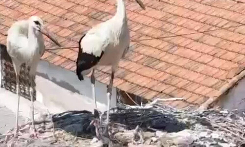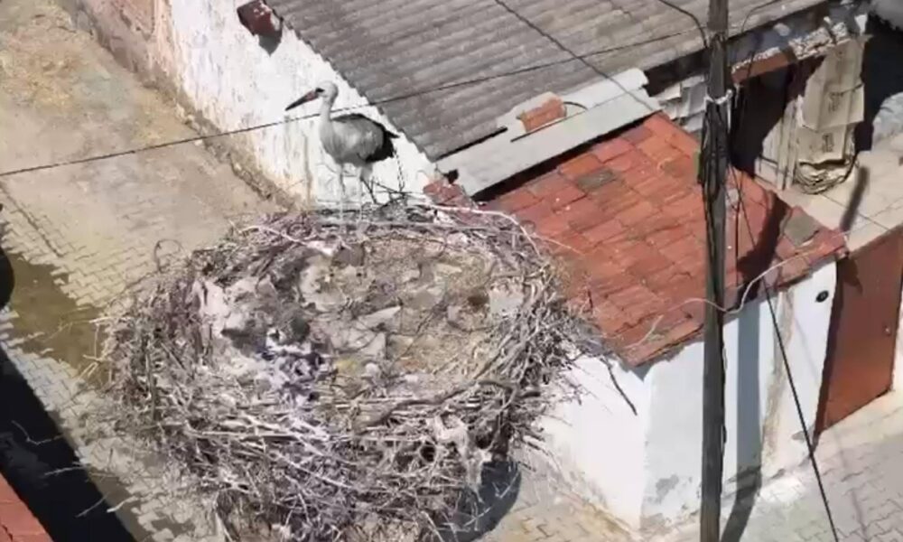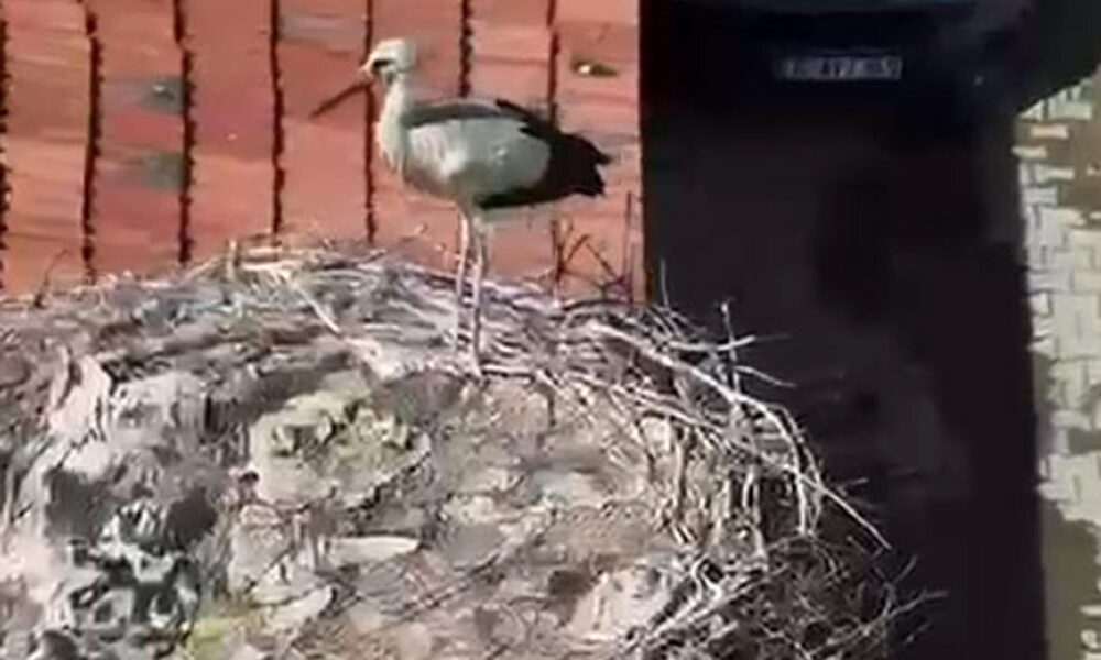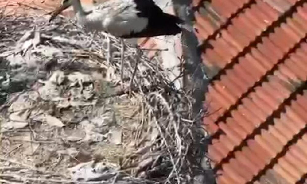İzmir’de ayağına ip dolanıp yuvasında mahsur kalan yavru leylek kurtarıldı