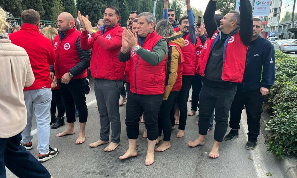 İzmir’de belediye işçileri ‘çıplak ayakla’ yürüdü