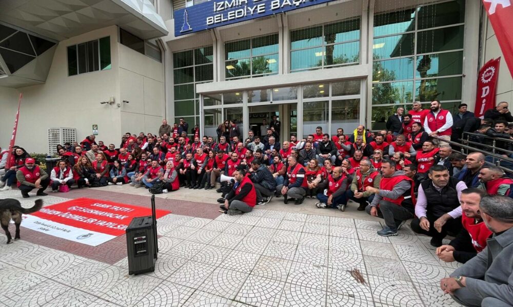 İzmir’de Büyükşehir Belediyesi işçilerinden oturma eylemi
