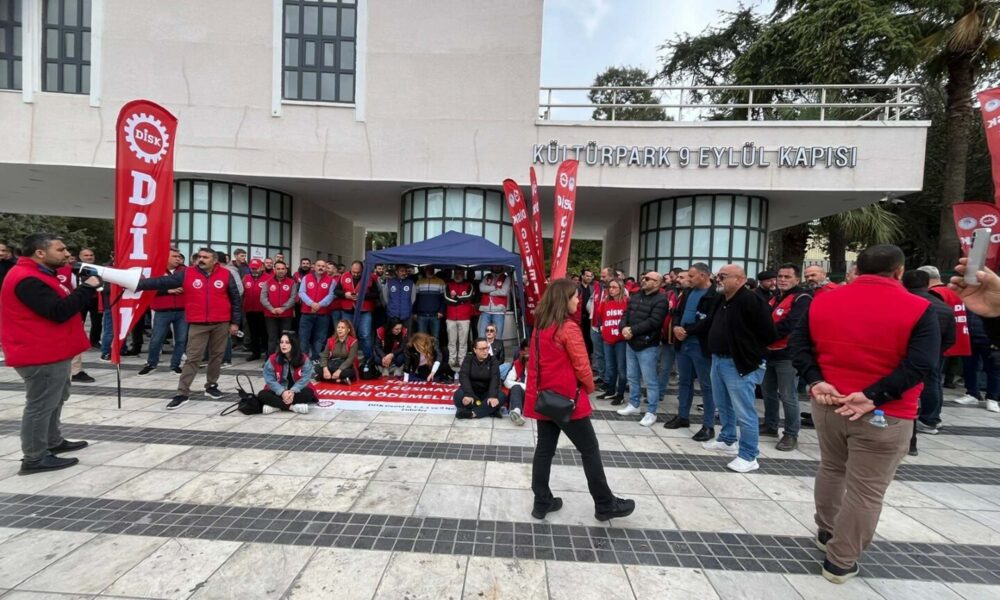 Açıklamanın ardından bir süre oturma eylemi yapan işçiler daha sonra Kültürparkın 9 Eylül kapısına yürüyerek, oturma eylemine orada devam etti.