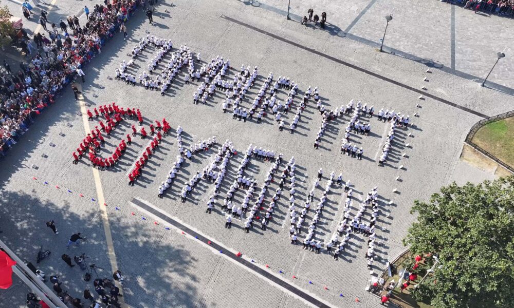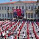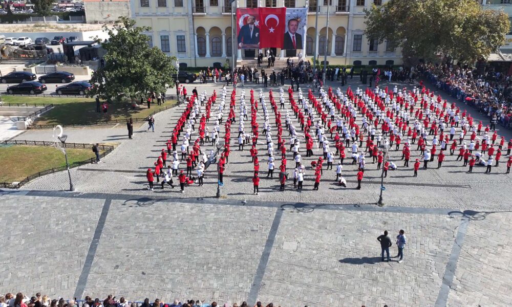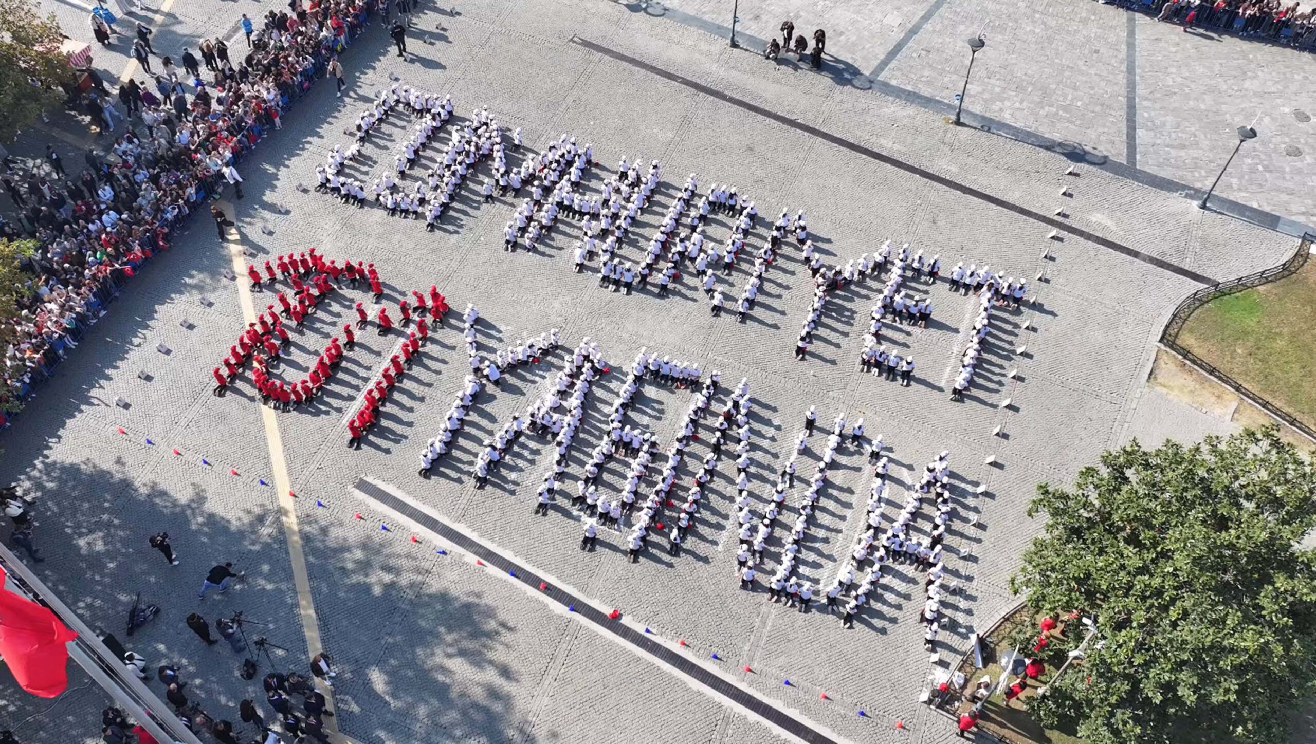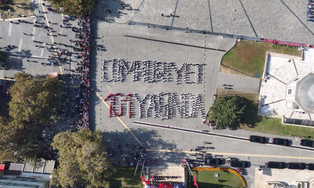 İzmir'de, Cumhuriyet'in 101’inci yıl kutlamaları Atatürk Anıtı'na çelenk sunulmasıyla başladı. Kutlamalar kapsamında, 400 ilkokul öğrencisi hazırladıkları koreografi ile Konak Meydanı'na 'Cumhuriyet 101 yaşında' yazdı. Fotoğraf: İzmir, (DHA)