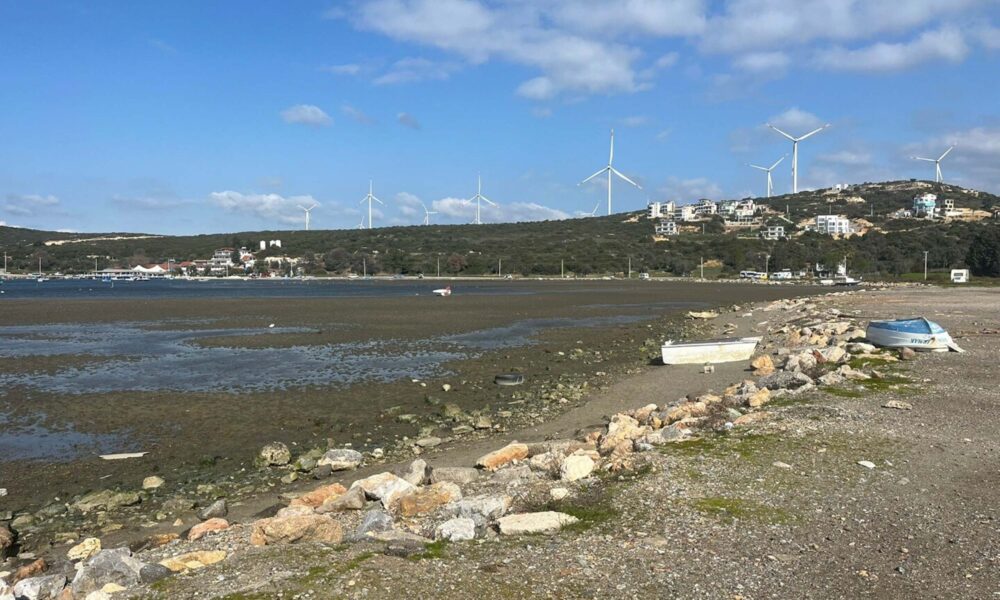 • İzmir'in Seferihisar ilçesi Sığacık Mahallesi'nde, sert poyraz nedeniyle yaşanan deniz çekilmesi devam ediyor. Fotoğraf: Yağmur ÖNGÜN / Seferihisar (İzmir), (DHA)