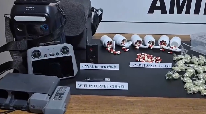 Menemen İlçe Emniyet Müdürlüğü Asayiş Büro Amirliği, ilçede 2 şüphelinin dron kullanarak uyuşturucu sevkiyatı yaptığı bilgisini aldı. Harekete geçen polis, şüphelilerin uyuşturucu sevkiyatı yaptığı dronu havada vurdu. Uyuşturucu madde bulunan dron düşerken, ekipler sevkiyatı yapan Ö.G.T. (26) ve D.G.’yi (26) gözaltına aldı. Yapılan araştırmada, şüphelilerin uyuşturucu madde sakladıkları yerler de belirlendi. Şüphelilere ait 392 sentetik ecza, 155 adet satışa hazır hale getirilmiş esrar maddesi, dron ve dron ekipmanları ele geçirildi. Emniyetteki işlemleri tamamlanan 2 şüpheli, sevk edildikleri adliyede tutuklandı.