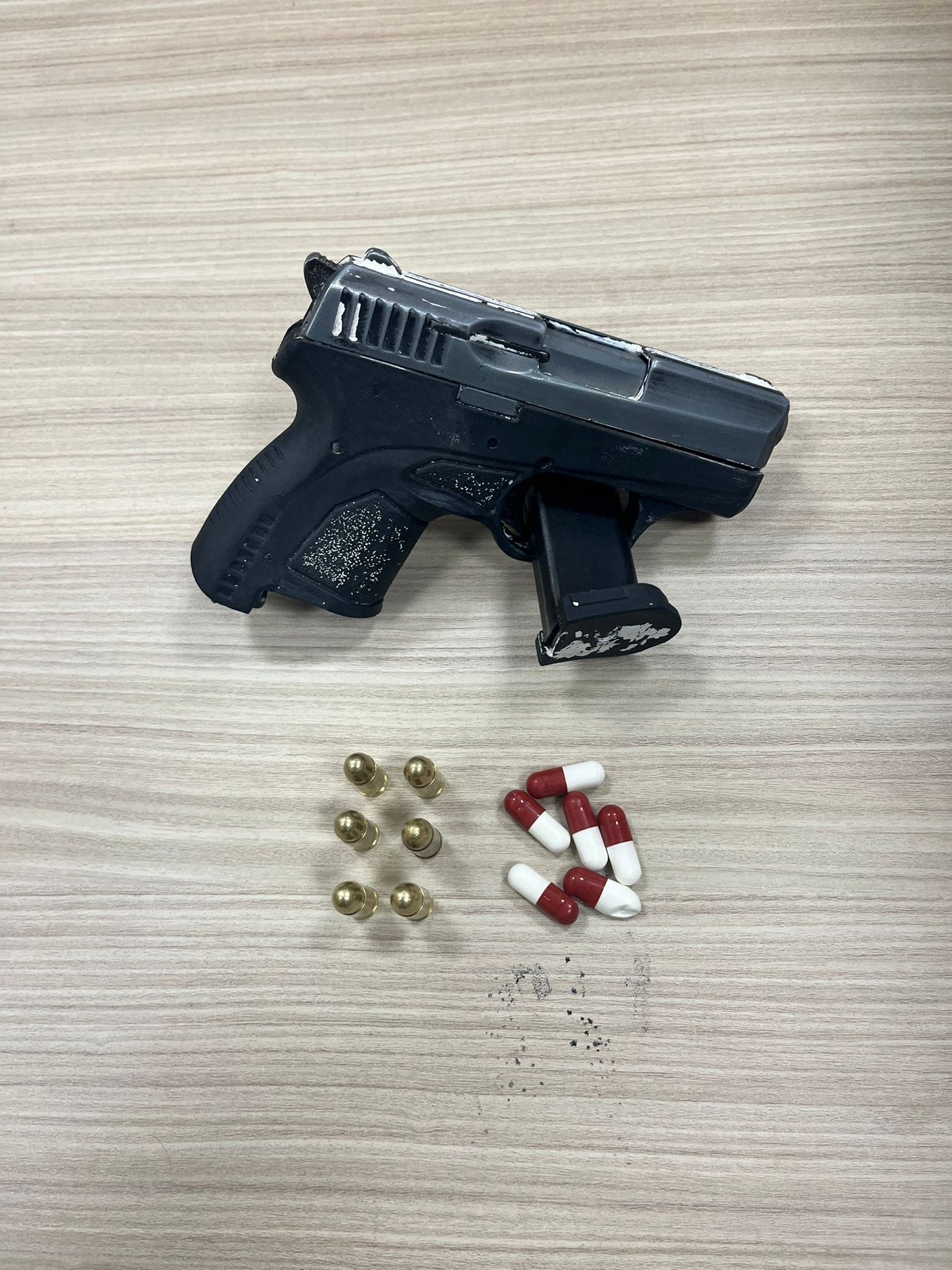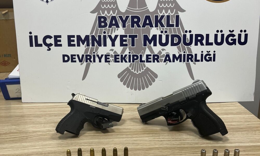 Bayraklı İlçe Emniyet Müdürlüğü ekipleri, Adalet Mahallesi 1593/10 sokakta da bir kişinin çatı katından havaya rastgele ateş açtığı bilgisi üzerine yaptığı çalışmada şüphelinin B.Ç. olduğu belirlendi. B.Ç.’nın ateş ettiği evin arkadaşı Y.C.B.’ye ait olduğu belirlenince savcılık izni ile evde arama yapıldı. Aramada 2 bin 934 sentetik ecza hapı ve 1 tabanca ele geçirdi, 2 şüpheli gözaltına alındı.